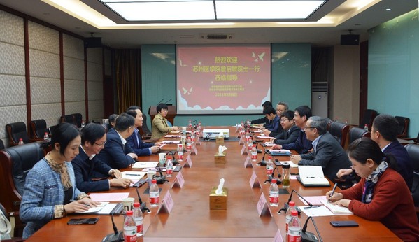调研中,詹启敏院士认真听取了放射医学与防护学院事业发展情况及国重室建设情况汇报和对苏州医学院建设发展的建议,细致了解其拔尖创新人才培养、特种医学学科建设、核环保与核技术研究院成立、国重室重组等情况。