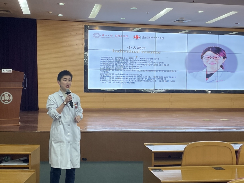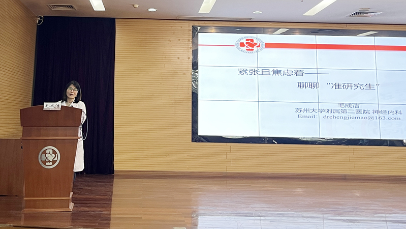 3月13日下午,“杏林风”骨干讲坛第一期在我校附属第二医院1号楼五楼学术报告厅顺利举办。我校附属第二医院主任医师、医学博士、副教授、硕士研究生导师、神经病学教研室主任毛成洁老师以《紧张且期待着——聊聊“准研究生”》为题,给毕业年级的医学生带来了一场精彩的讲座。苏州大学附属第二医院教育培训处助理李蓓老师出席,教育培训处熊飞老师、陈思老师,苏州医学院辅导员杨国兵老师、胡发娟老师,以及近200名医学生通过线上线下两种途径参加了讲座。李蓓老师主持讲座。讲座由学生会承办。