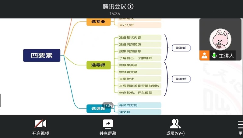 熊飞老师向同学们介绍了硕士研究生面试常规流程和面试基本礼仪,特别强调了阅读英文专业文献的重要性。此外,熊飞老师还和同学们简要介绍了硕士研究生调剂注意事项。