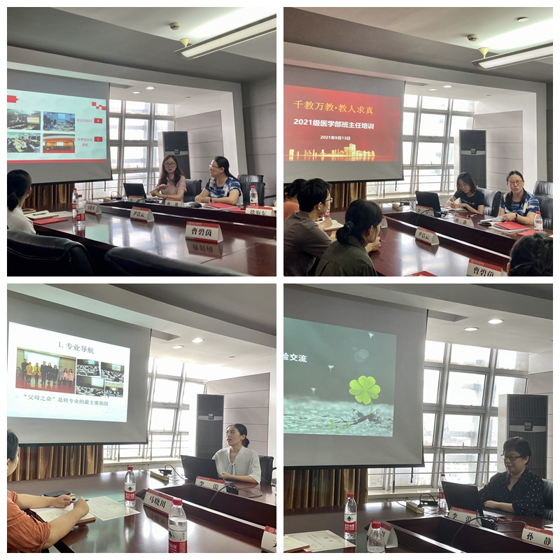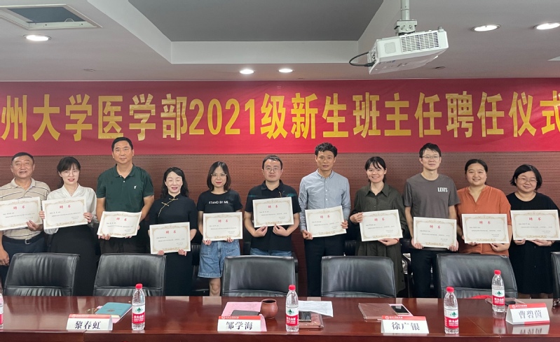 2021年9月13日上午九点半,医学部2021级新生班主任聘任仪式暨培训会在炳麟图书馆825会议室举行。会议分新生班主任聘任仪式和班主任培训会两个环节。