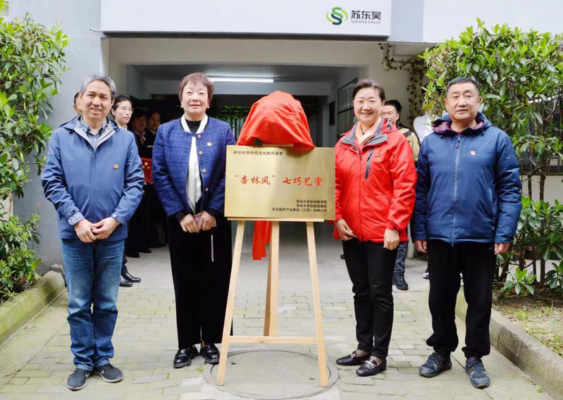 3月29日下午,“铸魂逐梦”博雅学堂之“杏林风”七巧艺堂在我校独墅湖校区二期A03宿舍物业办公室揭牌并启动第一期课程。“杏林风”七巧艺堂是由苏州大学苏州医学院、后勤管理处和东吴服务产业集团(江苏)有限公司联合推出的中华优秀传统文化教育合作项目。七巧艺堂由东吴服务产业集团独墅湖公寓项目和苏州大学苏州医学院学生会承办。