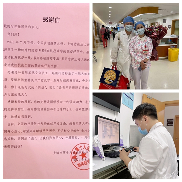 采访背景:2017级临床医学专业上海市第十人民医院实习生时兆强,在科室封闭管理半个月期间全程参与抗疫,获上海市第十人民医院临床医学院感谢信及嘉奖,并作为学生代表参加解封慰问仪式。