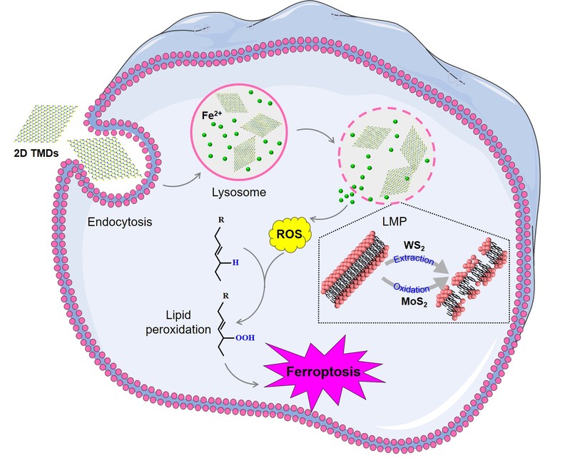 苏州大学李瑞宾教授团队发现了纳米片表面空穴引发铁死亡的新机制,相关成果以“Vacancies on 2D Transition Metal dichalcogenides Elicit Ferroptotic Cell Death”为题,于7月13日在线发表在Nature communications杂志上(Nat Commun, 2020, 11, 3484)。