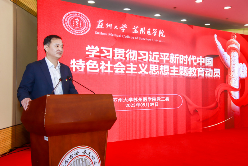 学习贯彻习近平新时代中国特色社会主义思想是新时代新征程开创事业发展新局面的根本要求,开展学习贯彻习近平新时代中国特色社会主义思想主题教育是党中央在二十大之后部署开展的第一个主题教育,正逢其时,意义重大。医学院上下将更加紧密地团结在以习近平同志为核心的党中央周围,把开展主题教育与推进“四方共建”苏州大学苏州医学院及附属医院改革发展相结合,认真完成各项工作任务,力争将主题教育学习成果体现到具体工作中,让全院师生真正感受到主题教育带来的新变化、新气象、新成效。