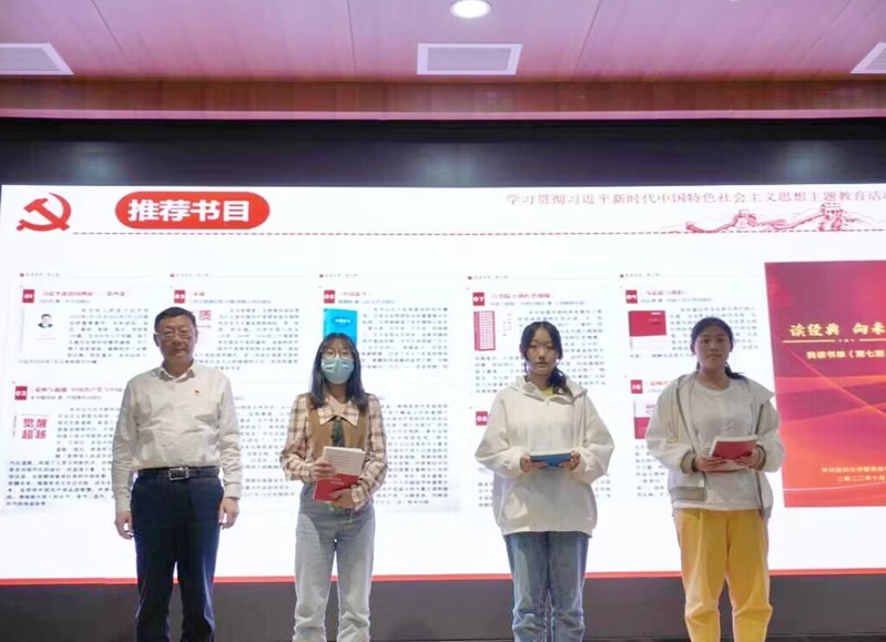 本期分党校读书会结合党史学习教育精心选取《习近平谈治国理政》等10本作为阅读书目。由陈建军老师为培训班学员授书并合影留念。