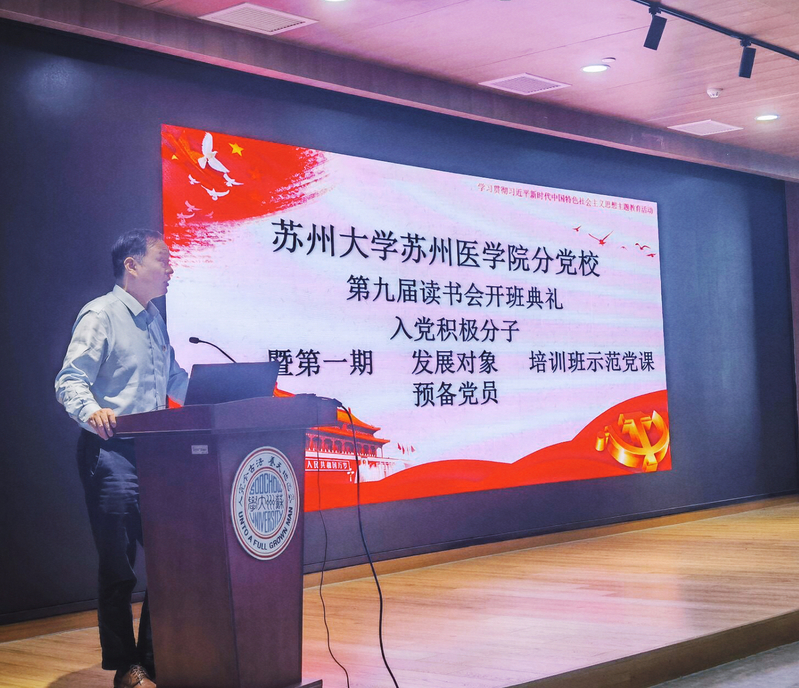 5月10日下午,2023年苏州大学苏州医学院分党校第九届读书会开班典礼暨第一期入党积极分子、发展对象及预备党员培训班示范党课在医学楼四楼报告厅顺利举行。