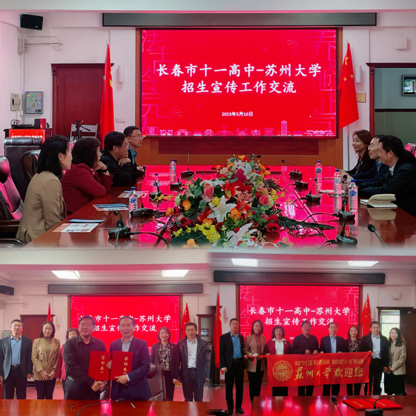 长春市十一高中杨天笑校长向宣传组介绍了学校情况,并对他们近年来考入苏大学生的培养发展给予了极大地肯定,表示将进一步大力宣传,鼓励学生报考我校。