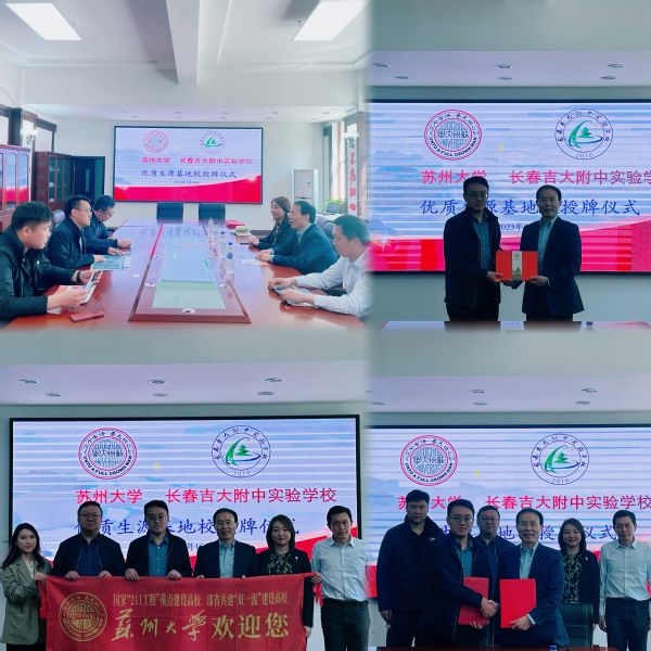招生宣讲团到访了东北师范大学附属中学、长春市十一高中、吉大附中实验学校,通过座谈会、科普讲座、家长咨询会等方式与各校领导、师生及家长进行了充分交流,并在三所中学举行了“苏州大学优秀生源基地”签约和挂牌仪式。