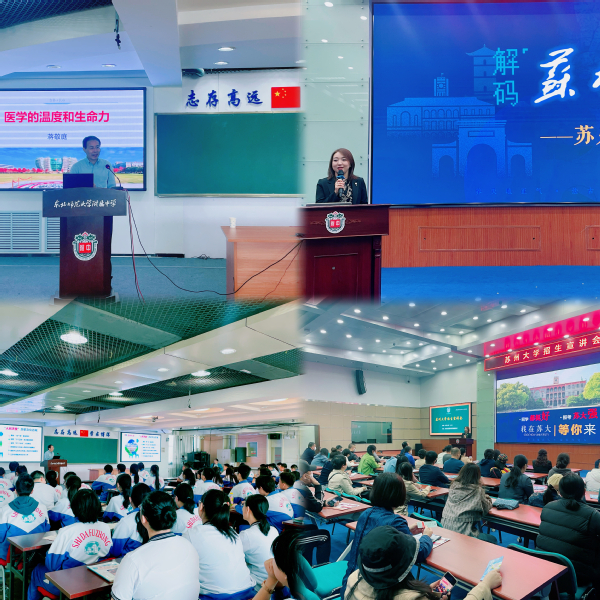 作为享受国务院特殊津贴专家、博士生导师,蒋敬庭教授以“医学的温度和生命力”为主题面向中学生开展科普讲座,生动有趣地讲解了关于肿瘤免疫治疗的科普讲座,深入浅出,开拓了学生视野,激发了他们的兴趣。苏州医学院党工委副书记、副院长孟玲玲以“解码苏大强”为主题面向学生家长开展招生宣传,详细介绍了苏州大学的历史沿革、学科专业设置、师资力量、教学科研成果和杰出人才等。在现场提问环节,学生和家长们热情高涨,招生宣传工作组就家长们关心的学校专业优势、学生未来发展及新高考形势下报考苏大的各类问题逐一解答,为大家了解苏大提供了全面的参考信息。