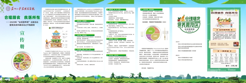 大学生营养科普宣传三折页主要介绍了中国居民膳食指南提炼出的八条平衡膳食准则:食物多样,合理搭配;吃动平衡,健康体重;多吃蔬果、奶类、全谷、大豆;适量吃鱼、禽、蛋、瘦肉;少盐少油,控糖限酒;规律进餐,足量饮水;会烹会选,会看标签;公筷分餐,杜绝浪费。此外,还介绍了《中国居民平衡膳食宝塔》和《中国居民平衡膳食餐盘》,旨在引导大学生合理膳食、健康生活。