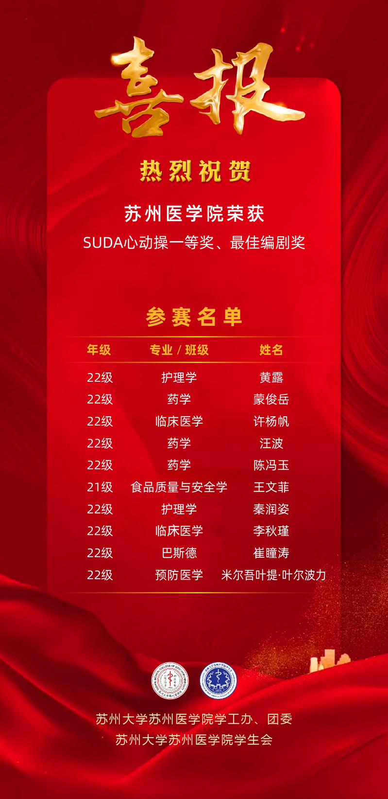 热烈祝贺苏州医学院荣获SUDA心动操一等奖、最佳编剧奖