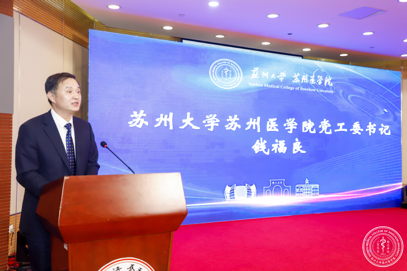 首先,钱福良祝贺全体获奖同学,并代表学院向各位嘉宾对苏州医学院育人工作的支持表示诚挚的感谢。他介绍了过去一年中学院在人才培养、教学科研、学科建设等方面取得的成果,表示捐赠奖学金在学生的教育体系中发挥着重要的作用,有助于落实三位一体的教育理念,凝聚了捐赠单位对苏州医学院的关爱和对学子们的深情期待,更是对全体师生在精神上莫大的鼓励和鞭策。