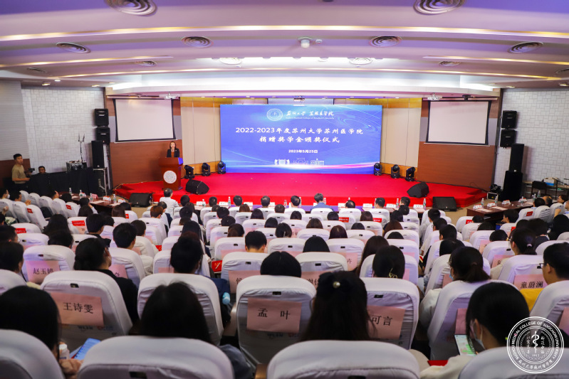 5月25日晚,苏州大学苏州医学院成功举办2022-2023年度捐赠奖学金颁奖仪式。在本年度院级捐赠奖学金评定中,苏州医学院共85人分获苏州口腔医院奖学金、康哲奖学金、盛发奖学金、康泰健奖学金、苏州中化奖学金、园区CDC奖学金六项院设捐赠奖学金荣誉项目。苏州口腔医院院长葛林虎,深圳康哲直营事业部区域经理顾陆军、江苏盛发工程技术有限公司总经理阙圣法、深圳康泰健医疗科技股份有限公司华东区总经理李桂鑫、苏州中化副总经理王厚杰等捐赠方嘉宾莅临出席本次活动。中国工程院院士、苏州医学院院长詹启敏,校学生工作部(处)处长董召勤,苏州医学院党工委书记钱福良,执行院长徐广银,以及苏州医学院各办公室(中心)、各学院、各直属(含参照直属)附属医院、各校级科研机构、学院本科生代表等参加本次活动。仪式由苏州医学院党工委副书记、副院长孟玲玲主持。