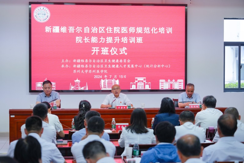 7月15日,新疆维吾尔自治区住院医师规范化培训院长能力提升培训班开班仪式在苏州大学培训中心103教室举行。