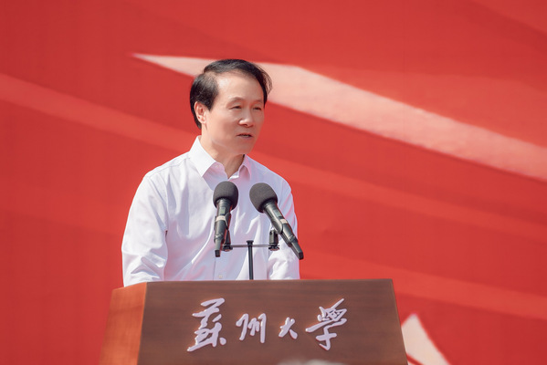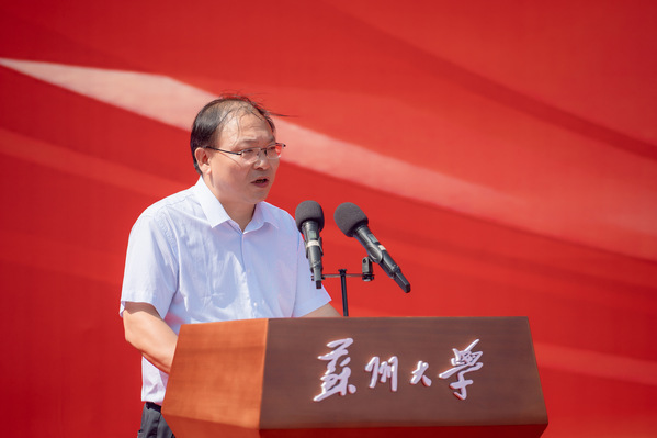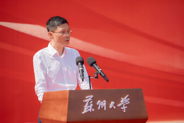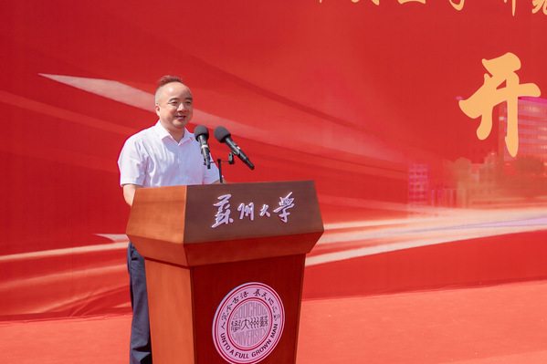 顾建忠代表学校向出席活动的各位领导、嘉宾表示热烈欢迎和衷心感谢。他表示,苏州大学举办此次开工活动是为积极响应国家创新驱动发展战略,促进医学研究与教育的高质量发展,在苏州大学建设发展历程中具有里程碑意义。