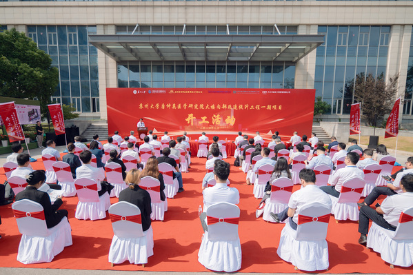 9月28日,苏州大学唐仲英医学研究院大楼内部改造提升工程一期项目开工活动在独墅湖校区盛大启幕。出席此次开工活动的领导和嘉宾有江苏省住建厅集中建设处副处长蒋伟,学校党委常委、副校长查佐明,中国工程院院士、苏州医学院院长詹启敏,江苏省公共工程建设中心副总经理娄永峰,苏州医学院党工委书记钱福良、执行院长李斌,苏州金螳螂建筑装饰股份有限公司董事长张新宏,苏州君展建筑科技有限公司董事长瞿海军,苏州市城市建筑设计院有限责任公司院长邵玮琪,浙江江南工程管理股份有限公司专监戴雪峰,中企华建友工程管理有限公司总经理田春东,以及各参建单位具体负责人,苏州大学财务处、保卫处、后勤管理处、数据与信息管理处、实验室与设备处、基本建设处等相关职能部门的领导以及苏州医学院领导班子、各办公室(中心)主任、入驻唐楼单位的领导和师生代表。仪式由学校基本建设处处长顾建忠主持。