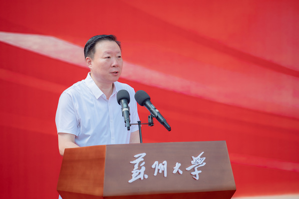 蒋伟在致辞中表示,长期以来省住建厅对苏州大学建设项目鼎力支持,不断优化建设管理,推动校园建设稳步开展。此次唐楼的建设寄托着各级领导的殷切期望,凝聚着广大师生的热切期盼,是一件具有里程碑意义的大事喜事和要事。为进一步抓好项目建设,他强调,要提高站位出合力,科学统筹高效组织,让项目推进更有速度;要齐心协力加油干,强化管理要素保障,让项目建设更有温度;要严防死守抓安全,从严把关,强化落实,让项目管理更有力度。