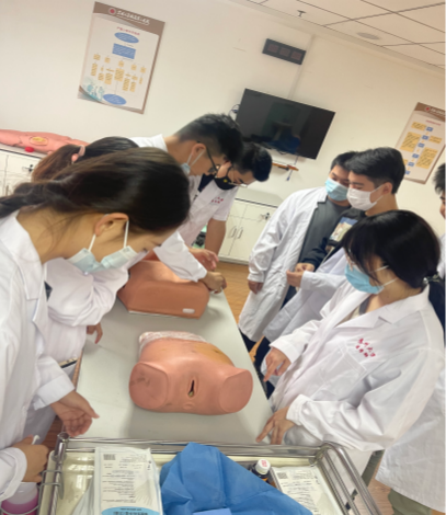 在每周的见习课中,我们窥得了临床生活的一角,也逐渐开始从理论到临床过渡。老师们运用生动的比喻和实际案例,把理论知识和实际的临床处理联系起来。比如在讲胃溃疡、克罗恩病时,我们通过观看内镜下表现深深的理解了什么是“纵行溃疡”、什么是“鹅卵石样改变”、什么是“全层黏膜充血”等。在这种教学方式下,我们对疾病的理解更深刻了。在这一年中,医院给予了我们丰富的临床实践机会,我们的临床技能也得到了很大的提升。CPR、四大穿刺、穿脱手术衣、消毒铺巾……平时的练习不仅磨练了我们的技术,更为我们应对技能考试增添了信心。这些临床实践的机会让我们更加接近医学的核心,让我们在实践中真正感受到医学的意义和使命。