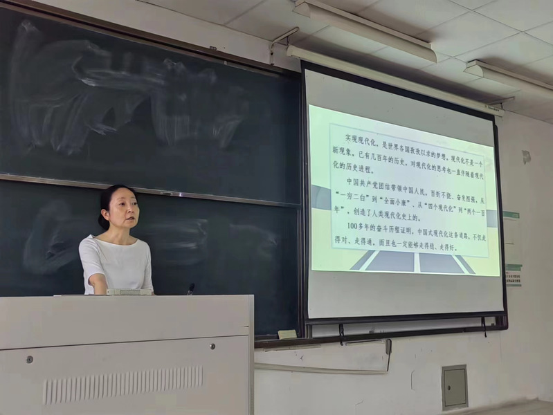 课程最后,吴校长总结了实现中国式现代化的各方面要求,强调了全国人民只要在党的旗帜下团结成“一块坚硬的钢铁”,心往一处想、劲往一处使,矢志不渝沿着中国式现代化这条光明大道走下去,就必将续写激荡人心的东方传奇,赢得令人惊叹的大国荣光。