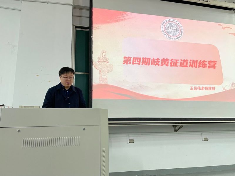 医学部团委书记王昌伟老师为开班典礼进行致辞,王老师对大家当选表示祝贺,并强调了青年一代有理想、有担当,国家就有前途,民族就有希望。王老师引用习近平总书记在庆祝中国共产党成立100周年大会上讲话鼓励新时代的同学们以长志气、硬骨气、蓄底气的姿态,在新的征程上奋力奔跑,为党和人民建立新功业。讲话中王老师诠释了“岐黄”和“征道”的意义,并由此引申而勉励医学生在学业,医术和思想上有所成长。