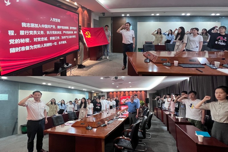 随后,在钱福良的带领下,全体师生党员面向党旗,举起右拳,重温入党誓词。“我志愿加入中国共产党,拥护党的纲领,遵守党的章程……为共产主义奋斗终身,随时准备为党和人民牺牲一切,永不叛党。”铿锵有力的宣誓声表达了师生们对党的事业忠贞不渝、奋斗终身的决心。