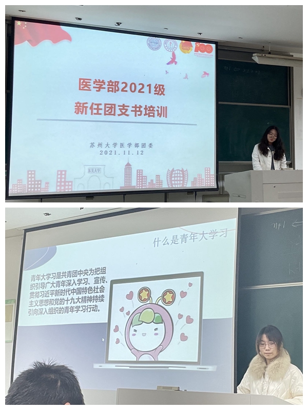 2021年11月12日晚,第四期岐黄征道训练营团干部增能计划工作培训于苏州大学独墅湖校区一期605-5201举行。本次活动主讲人为苏州医学院团委各个部门的工作人员,参加本次训练营的有苏州医学院20级和21级团支书、组织委员、宣传委员。