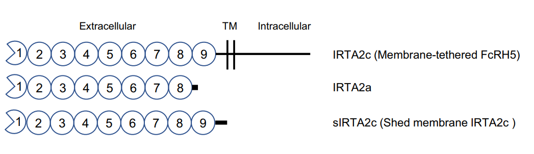 本研究从苏州大学附属第一医院血液科收集到28例MM样本进行分析并发现:有22例患者(78.57%)MM细胞上FcRH5表达百分比大于50%,BCMA为10例(35.71%),在大多数患者中FcRH5表达阳性率及平均荧光强度比值高于BCMA,且鉴别出部分患者MM细胞BCMA表达缺失却高表达FcRH5。此外,本研究还发现MM高风险型染色体1q21变异的MM患者FcRH5表达水平显著增高。