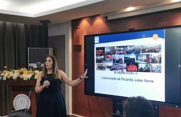 亚眠大学医学院教授Ingrid MARCQ代表专家团对于学校和学院的热情接待表示感谢。她从地理位置、学校架构、师生规模、教学领域等多个方面介绍了亚眠大学的基本情况,并重点介绍了该校在健康技术、新能源和农业三个方面的研究现状、科研能力和学术成就。