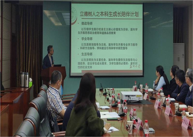 首先,周光明就放射医学与防护学院的本科生陪伴计划做了详细汇报,其中包含了特色专业的介绍、本科生导师制安排落实和执行、学生课程思政教育的开展等,本着以医报国,以核报国的宗旨,打造国际一流的放射医学本科专业。