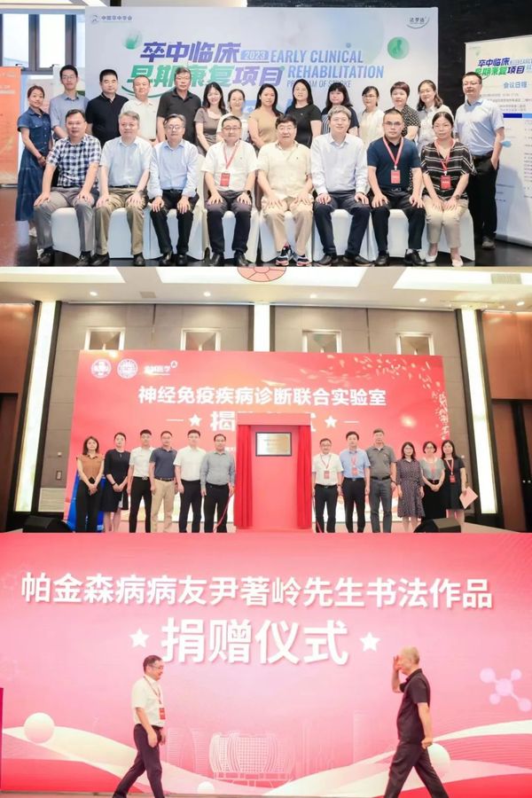 大会期间也见证了全国首个卒中临床早期康复项目的启动,院校企三方共同努力下的 “神经免疫疾病诊断联合实验室”揭幕,大会也充满了人文情怀,帕金森老病友尹著岭先生将其书法作品捐赠给刘春风教授团队的抗帕攻关中心。同时在大会期间启动了多个临床项目。