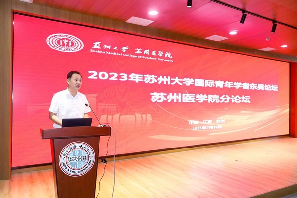 为进一步加强苏州医学院师资队伍建设,引进和储备更多有发展潜力的优秀青年学者,7月10日下午,2023年苏州大学国际青年学者东吴论坛苏州医学院分论坛在独墅湖校区医学楼4楼报告厅举行。我校副校长吴嘉炜,苏州医学院领导和相关办公室负责人,下属各学院(中心)、科研机构主要负责人、人事秘书、教师代表以及各直属附属医院人事相关负责人等出席。论坛由苏州医学院党工委书记钱福良主持。