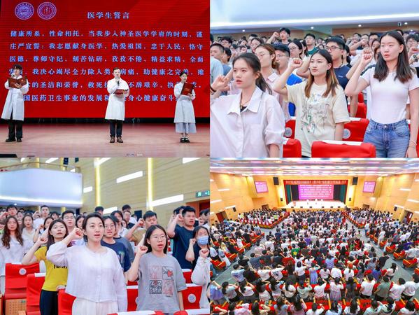 全体2025级临床医学、口腔医学硕士专业学位研究生重温了医学生誓言:“健康所系,性命相托。当我步入神圣医学学府的时刻,谨庄严宣誓……不辞艰辛,执着追求,为祖国医药卫生事业的发展和人类身心健康奋斗终身。”