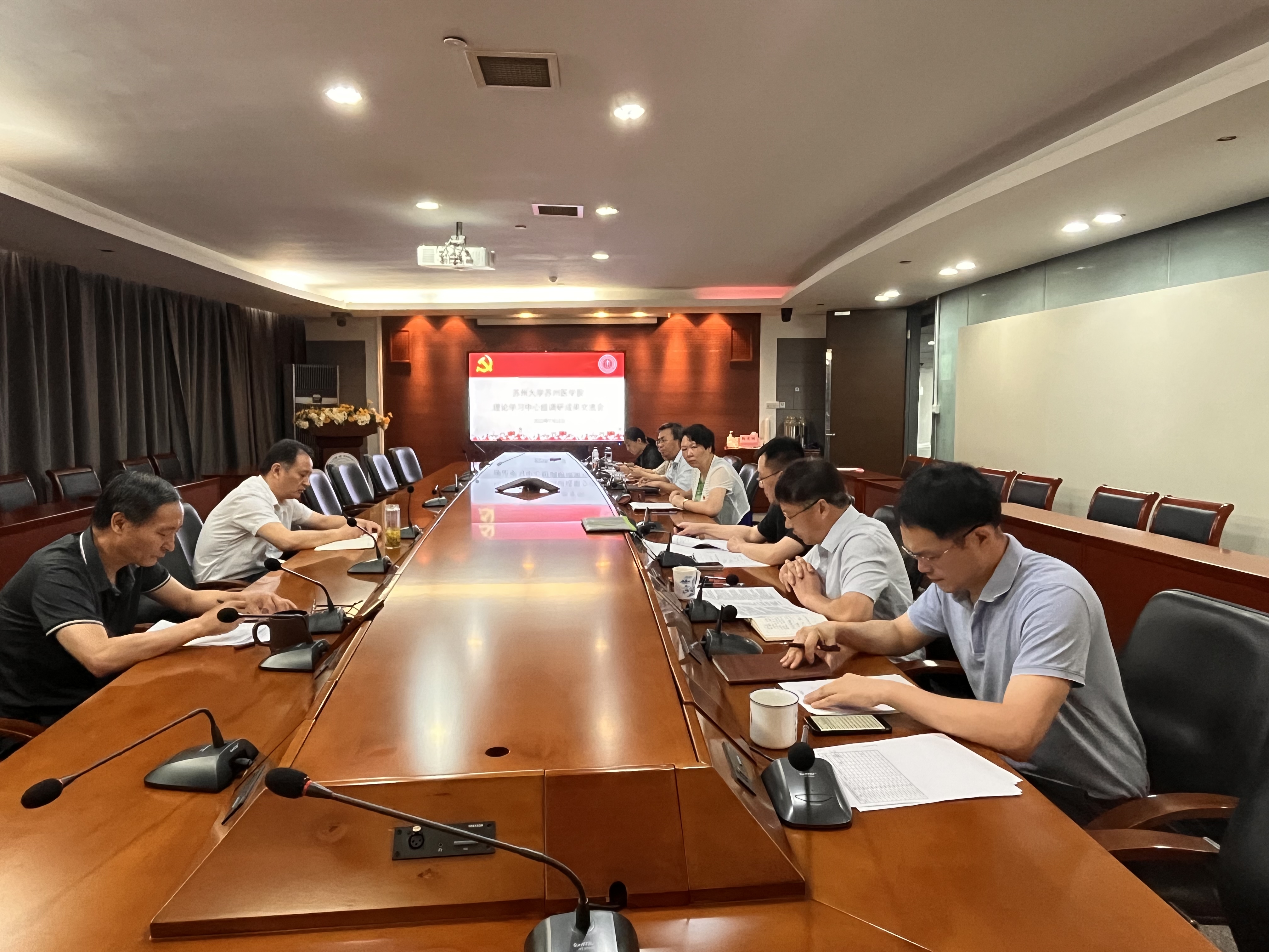 7月18日上午,苏州医学院理论学习中心组成员就前期开展的调研成果进行汇报交流和书面交流,重点围绕“四清单”谈问题、谈措施、谈成果转化。
