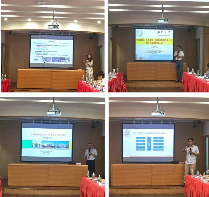 为了推进我院医学机能学学科与课程群建设,创新跨地域、跨学校、跨学科的医学机能学教研工作新形态,苏州大学苏州医学院于2023年7月24日在天赐庄校区举办了“江苏省医学机能学虚拟教研室”建设研讨会。出席会议的人员有苏州大学苏州医学院、贵州医科大学和右江民族医学院的生理学、病理生理学、药理学及机能实验学的教师代表;苏州大学苏州医学院副院长、护理学院党委书记龚政,苏州大学苏州医学院副院长钟慧,苏州大学苏州医学院基础医学与生物科学学院副院长陶金等莅临研讨会。会议由虚拟教研室负责人蒋星红教授主持,与会人员就虚拟教研室新模式下如何加强基层教学组织的合作交流进行了深入的研讨。