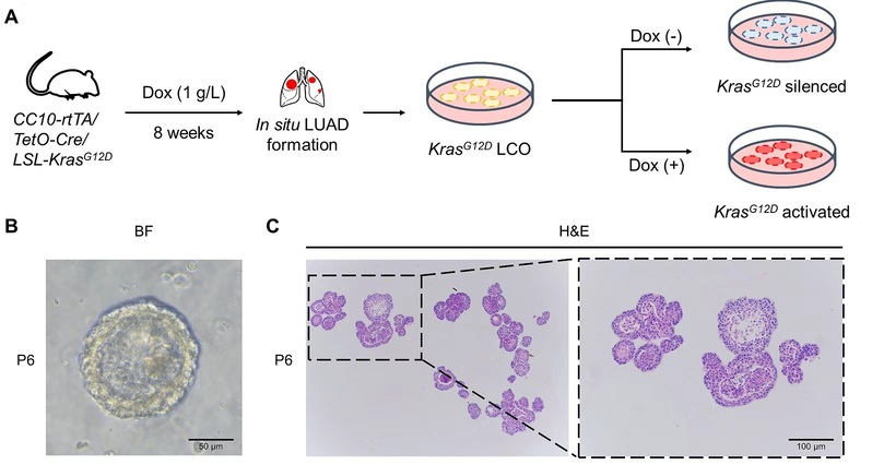图2. KRASG12D条件突变小鼠及KRASG12D突变类器官模型的构建