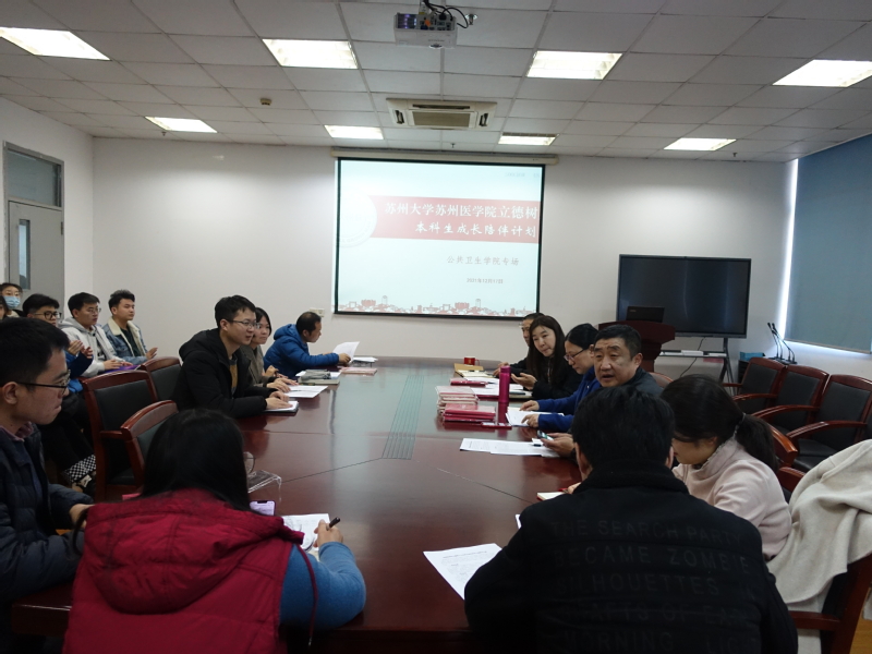 12月17日下午,苏州医学院学工办一行莅临学院交流本科生成长陪伴计划。医学院学工办主任温洪波、医学院学工办副主任孙静、医学院18级辅导员蔡莉老师、医学院20级辅导员杨国兵老师等到会,学院党委陈赞书记、副院长张洁、本科生导师张明芝、仲崇科、仲晓燕、安艳、莫兴波、李加付以及全部导生参加了此次会议。