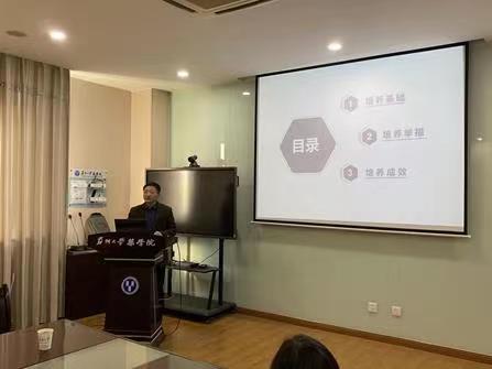 首先,负责对接药学院的辅导员沈君老师从学生的基本情况、就业情况和科研情况三个方面作了详实的汇报。蔡莉老师也向与会人员介绍了“本科生成长陪伴计划”推进的总体思路、目前的工作进展和考核评价体系,并对未来的工作设想进行了说明。