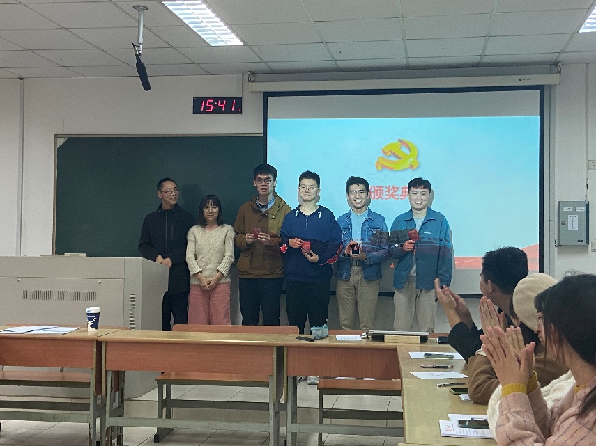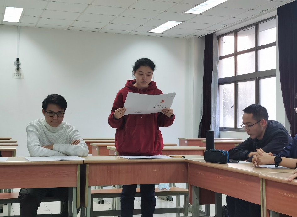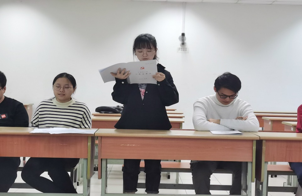 接着,召开了接收预备党员大会,本次大会应到会正式党员8名,预备党员6名,实到会正式党员8名,预备党员6名,有表决权的正式党员到会人数超过应到会有表决权人数的半数,符合规定人数。本次会议的议题是讨论接收李佳欣、史雅娴、伍鑫晨、齐志翔、黄彧5名同志为预备党员的事宜。会议严格按照党组织接收预备党员程序。经表决,一致同意接收5名同志为中共预备党员。本次议程全部完成,活动圆满结束。