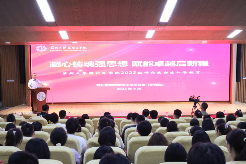 9月11日下午,苏州大学苏州医学院在医学楼四楼学术报告厅举办2023级研究生新生入学教育之实验室文化讲座。苏州医学院2023级研究生新生于线上线下同步参会。苏州医学院特聘教授、生物化学与分子生物学系主任苏雄担任主讲嘉宾,讲座由苏州医学院党工委副书记吴德建主持。