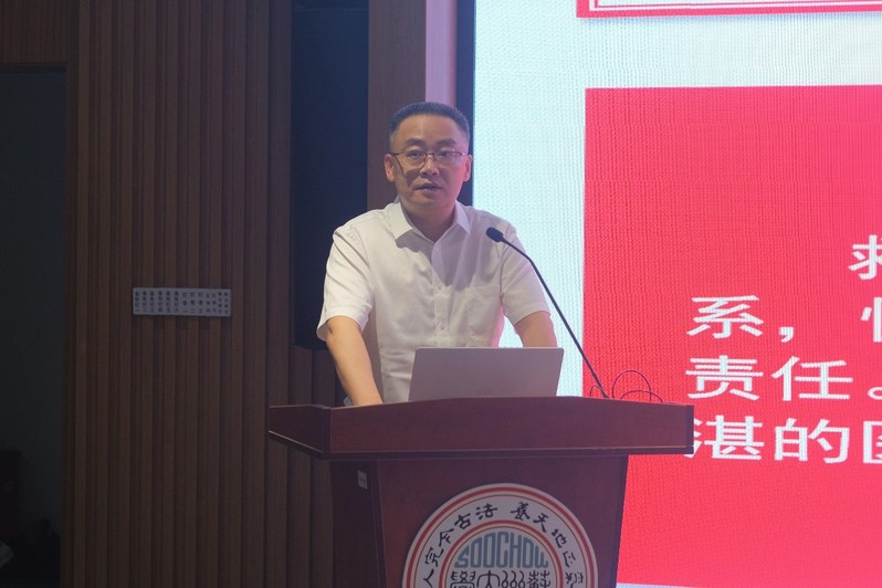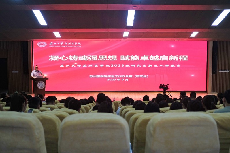 9月12日下午,苏州大学苏州医学院在医学楼四楼学术报告厅举办2023级研究生新生入学教育之医学人文讲座。苏州医学院2023级研究生新生于线上线下同步参会。苏州大学附属第二医院副院长施晓松担任主讲嘉宾。讲座由苏州医学院党工委副书记吴德建主持。
