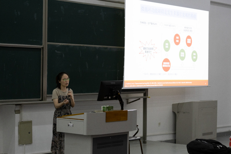 吴水燕老师以“触动始于看见,进步源于坚守”为主题,首先简单介绍了自己在ICU的工作经历与体验,并较为详细地阐述了有关儿童脓毒症的研究经历与经验,包括她的研究设计与目标、科研成果与荣誉以及指导学生参加比赛取得的诸多收获。通过吴老师分享的多次参加国际交流大会并交流发言的感悟,同学们感叹崇拜的同时,也认识到了认真学习英语与专业基础知识的重要性。