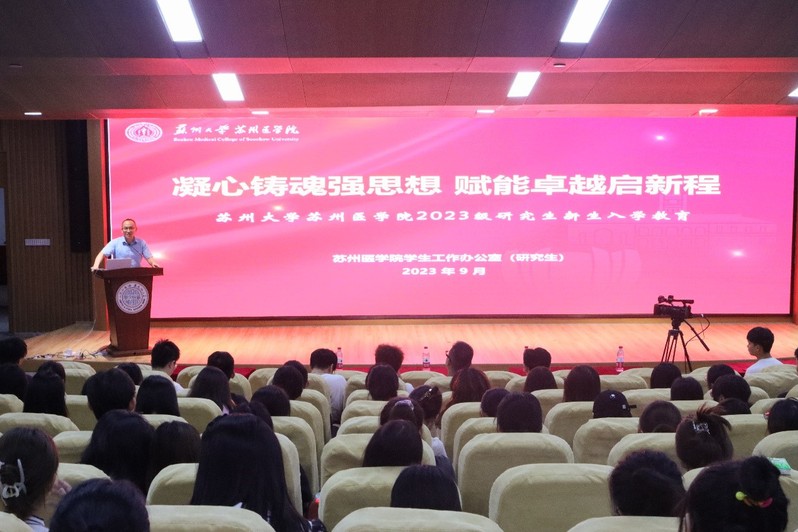 9月14日下午,苏州大学苏州医学院在医学楼四楼学术报告厅举办2023级研究生新生入学教育之心理健康讲座。苏州医学院2023级研究生新生于线上线下同步参会。苏州大学大学生心理健康教育研究中心专职咨询师、总督导陶新华担任主讲嘉宾。讲座由苏州医学院党工委副书记吴德建主持。