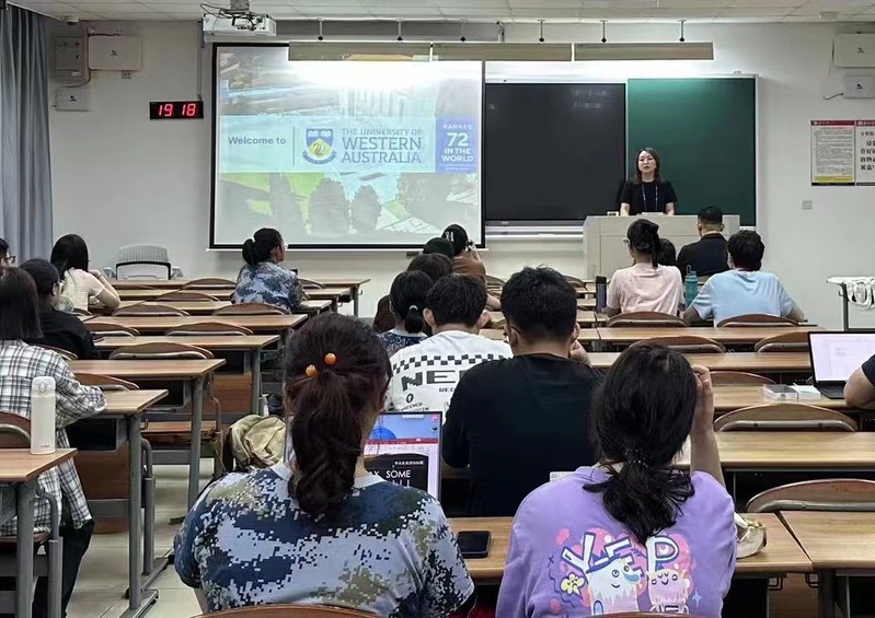 首先钱老师介绍了西澳大学所在地--珀斯的美丽风光,以及整个学习环境与学科基本情况,西澳大学是一所百年老校,是澳洲八大校之一,QS世界排名72位,是名副其实的世界顶尖学府。巴里·马歇尔博士在该校任职认识期间获得诺贝尔医学与生理学奖。讲解结束为同学们播放了往届交流学生自制的vlog,近距离感受游学风光。他表示,在西澳大学的学习经历一定会给同学们留下深刻印象,帮助同学们体悟不同的文化背景,锻炼沟通能力、团队协作能力等。
