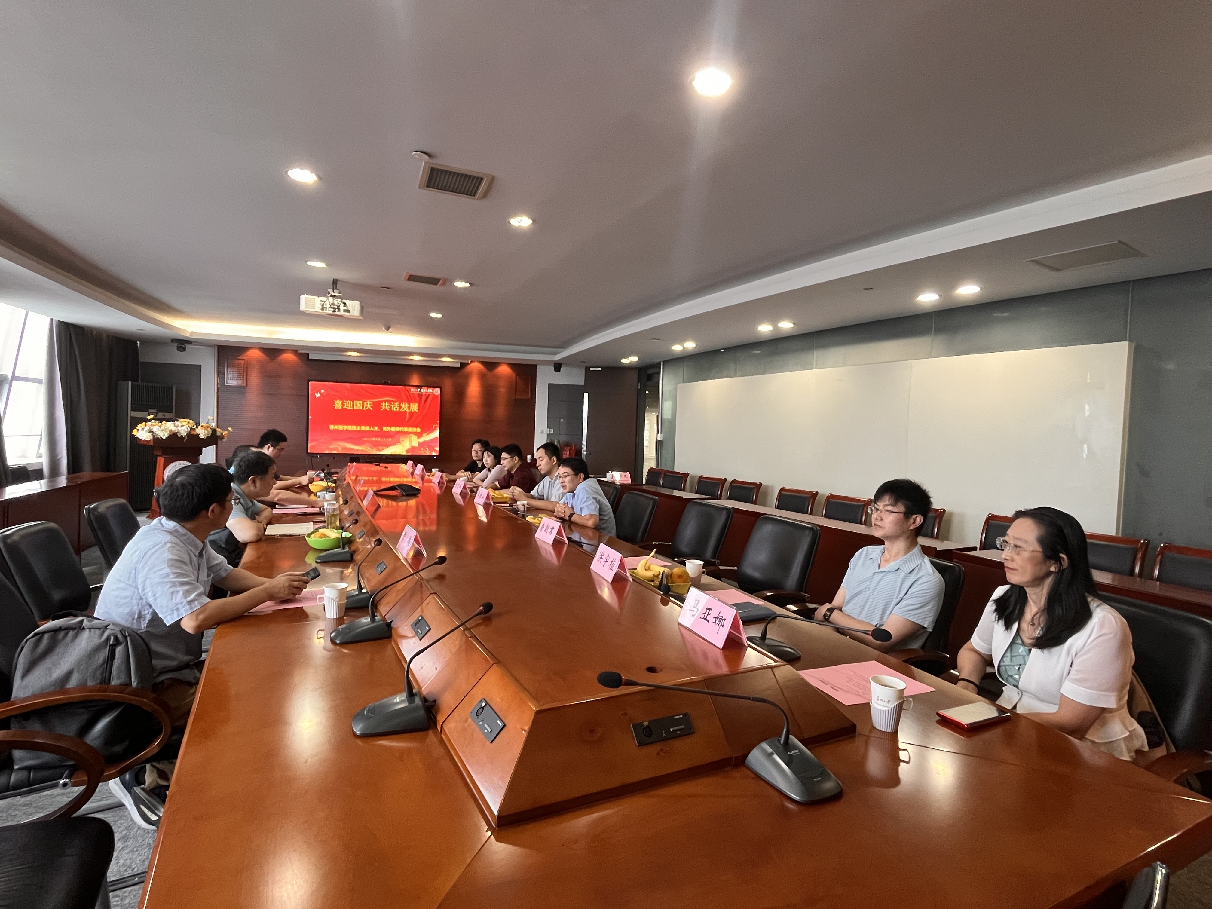 金风送爽,丹桂飘香,在祖国生日与传统中秋双节来临前,苏州医学院召开了“喜迎国庆、共话发展”民主党派人士、党外教师座谈会。参加会议的有九三学社、民建、民进、民盟、农工、致公等各民主党派代表人士,欧美同学会、侨联、知联等各团体代表,及党外教师代表。苏州医学院党工委书记钱福良到会讲话,会议由苏州医学院党工委副书记吴德建主持。