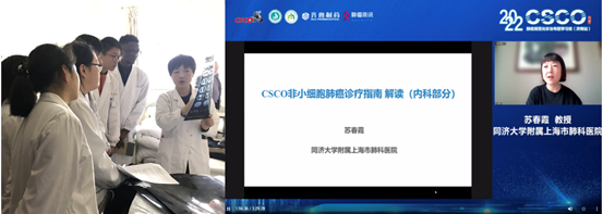 科研过程中,经常会遇到一些困难。面对科研道路的拦路虎,苏春霞表示,我们赶上了好时代,有很多可以合作的空间和拓展的科研方向,比如我们和国际IASLC(国际肺癌协作组织)、MSKCC(凯瑟琳纪念医院)等肿瘤学大咖们,国内其他大学及基础转化领域、免疫基础等专家合作,利用业余时间线上沟通,建立并完善国际交流和全国多中心MDT平台,互相借鉴、取长补短,碰到的问题也能迎刃而解。随着肺科医院肿瘤科这个平台的迅速发展,《中国临床肿瘤学会免疫检查点抑制剂临床应用指南》《中国临床肿瘤学会免疫检查点抑制剂相关的毒性管理指南》中肺癌部分及肺毒性部分连续两年由苏春霞执笔。作为全国指南的执笔者,有压力就有动力,肺科医院的肿瘤科要在临床转化研究方面做的更快更好,才能把更多的证据提供到指南中,苏春霞带领团队在肺癌免疫治疗标志物方面及肺毒性方面做了不少临床和转化研究,她牵头全国多中心的免疫治疗临床研究以及生物标志物的大型临床及转化研究,部分研究结果写入到了CSCO指南中,用于指导我国的免疫检查点抑制剂临床应用及肺毒性的处理。