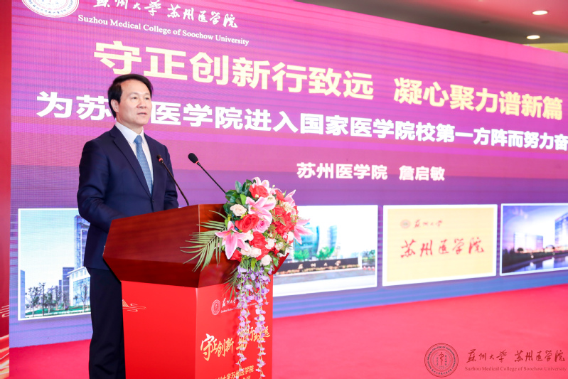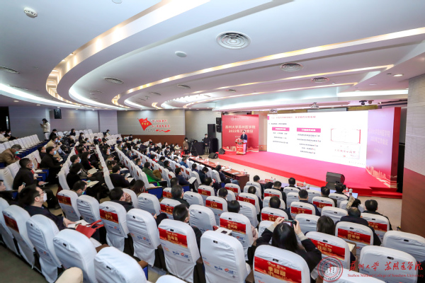 詹启敏院士以“守正创新行致远 凝心聚力谱新篇 为苏州医学院进入国家医学院校第一方阵而努力奋斗”为题,从苏州医学院概况、主要工作、发展愿景等方面作了全面详实的工作报告,剖析了当前面临的问题和挑战,并重点阐述了苏州医学院2022年及今后一段时间的重点工作,以及医学健康事业发展的重大战略意义。他指出,在“健康中国”国家战略大背景下,苏州医学院将迎来历史性发展机遇,学院将紧紧围绕发展定位及建设思路,聚焦立德树人,聚力改革创新,扎实推进各项具体工作,谋划好推进学院建设的时间表与路线图,落实“四方共建”任务,凝心聚力、群策群力,为医学和健康事业发展作出苏大贡献。