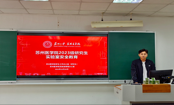 10月20日下午,苏州大学苏州医学院于独墅湖校区302幢2109教室举办新生实验室安全教育讲座。本次讲座由苏州大学苏州医学院实验室管理办公室蒋芸老师主讲,部分科研机构及挂靠医院2023级研究生新生参与讲座,研究生辅导员娄勇主持。