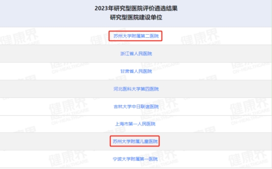 苏州大学附属第二医院神经内科、苏州大学附属儿童医院小儿内科、苏州大学附属第一医院血液学、苏州大学附属儿童医院小儿外科入选2023年研究型学科榜单。