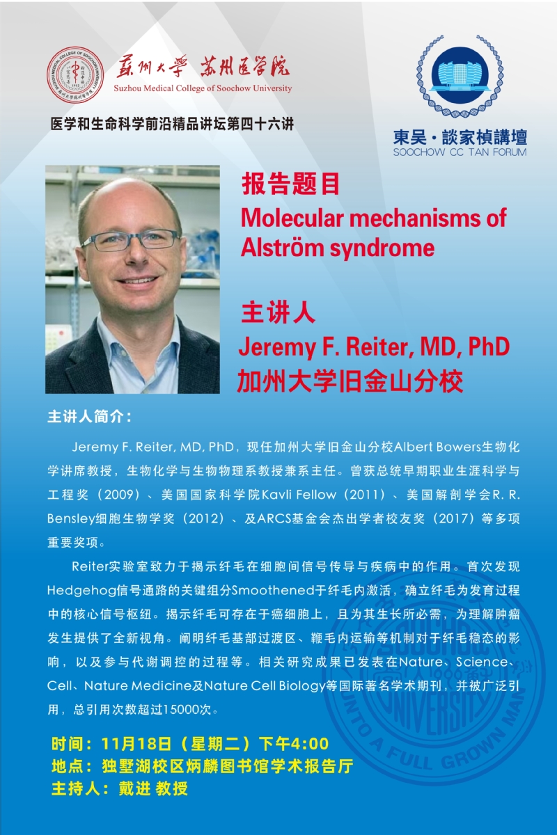 【东吴·谈家桢讲坛46】Molecular mechanisms of Alström syndrome