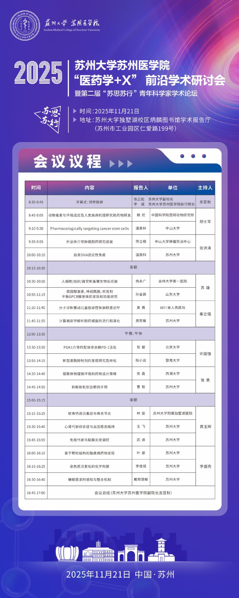 苏州大学苏州医学院2025年“医药学+X”前沿学术研讨会暨第二届“苏思苏行”青年科学家学术论坛